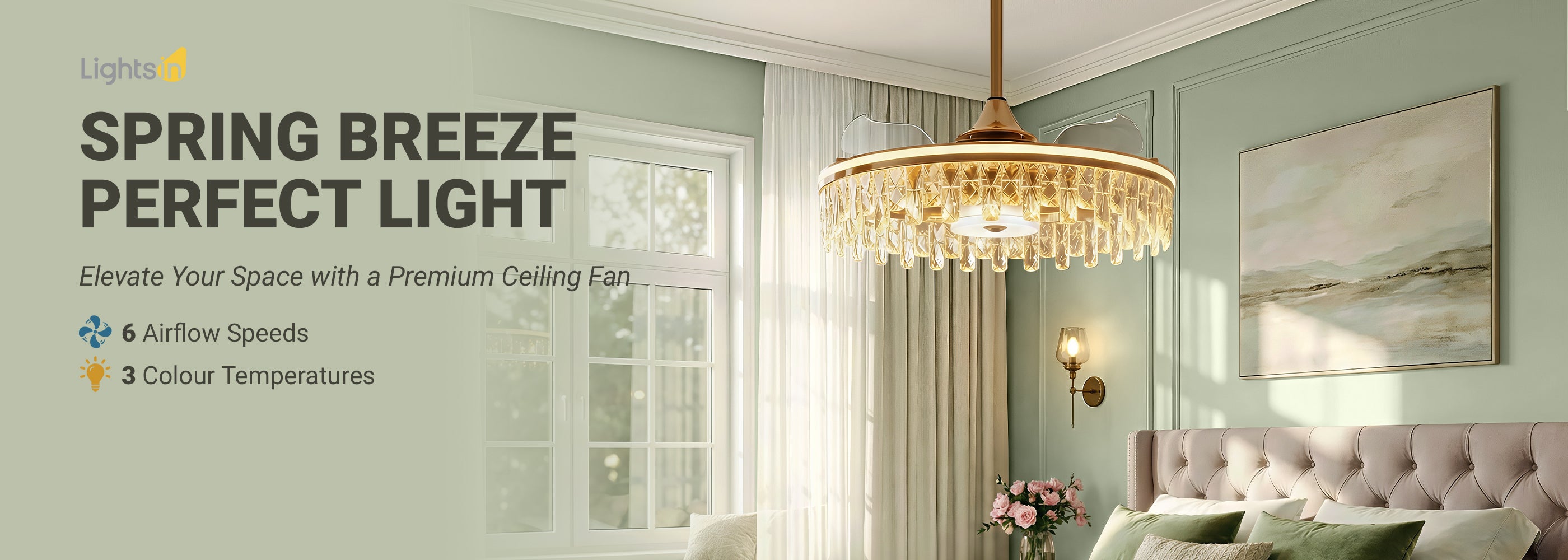 Gold Crystal Ceiling Fan with Light & Remote | 6-Speed Quiet Fan