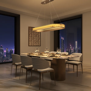 Elevate your space with this sleek bronze oval pendant light, featuring warm LED illumination and sparkling crystal accents. It creates a captivating glow and serves as a stylish centerpiece, combining modern design with timeless elegance.