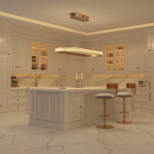 Arvia-Elegant Champagne Gold Oval Pendant Light with Crystal Accents