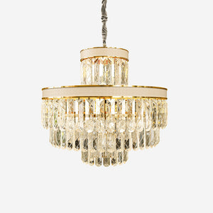 Exuding timeless sophistication, this modern pendant lighting piece combines the elegance of champagne gold with the sparkle of premium crystal. Its elaborate metal frame and radiant crystal columns make it a stunning pendant light fitting for any living or dining space. With an adjustable height and integrated dimmable light source, it offers both a luxurious ambiance and versatile lighting, seamlessly complementing high-end interiors, including bedroom hanging lights for a refined touch.