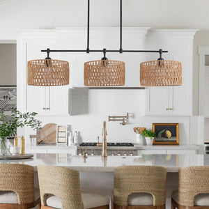 Eco-Friendly Handwoven Pendant Light with 3 Lampshades for Kitchen Island