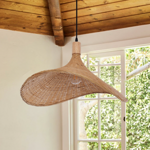 This handwoven bamboo pendant light brings an organic, artisanal touch to any space. Its unique flowing shape casts warm, inviting light, perfect for cozy living areas or intimate dining settings. Elevate your interior with a blend of natural craftsmanship and modern design simplicity.