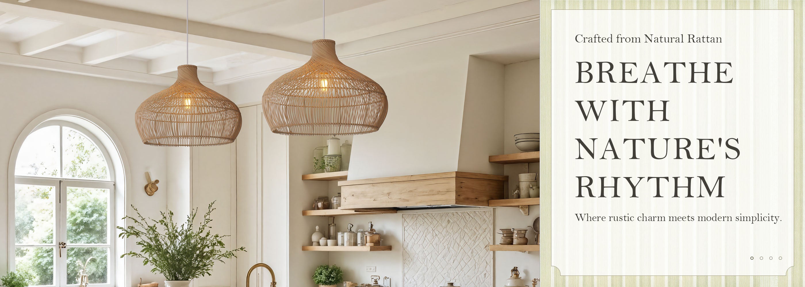 Natural Bamboo Pendant Light – Boho Rattan Hanging Light for Kitchen Island, Dining Room & Living Room