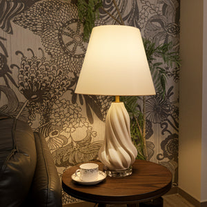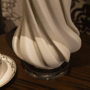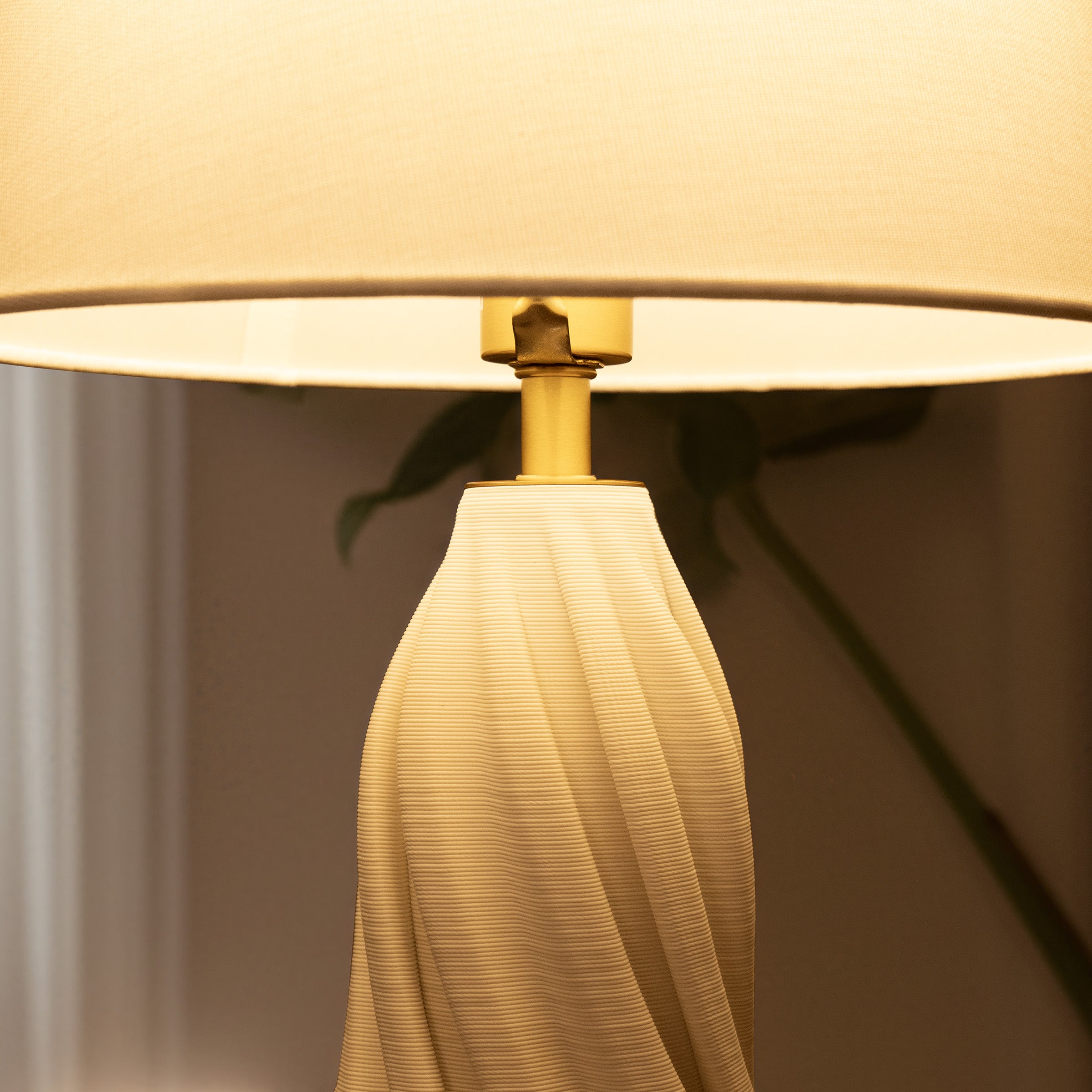 3D Pure White Ceramic Spiral Vase Table Lamp with Fabric Shade