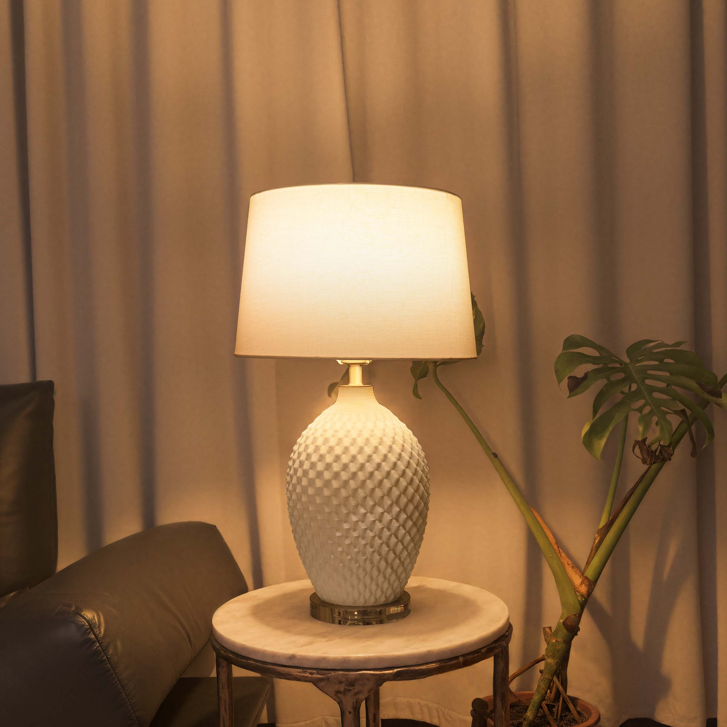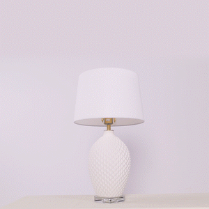 3D Pure White Diamond Embossed Relief Pattern Ceramic Table Lamp