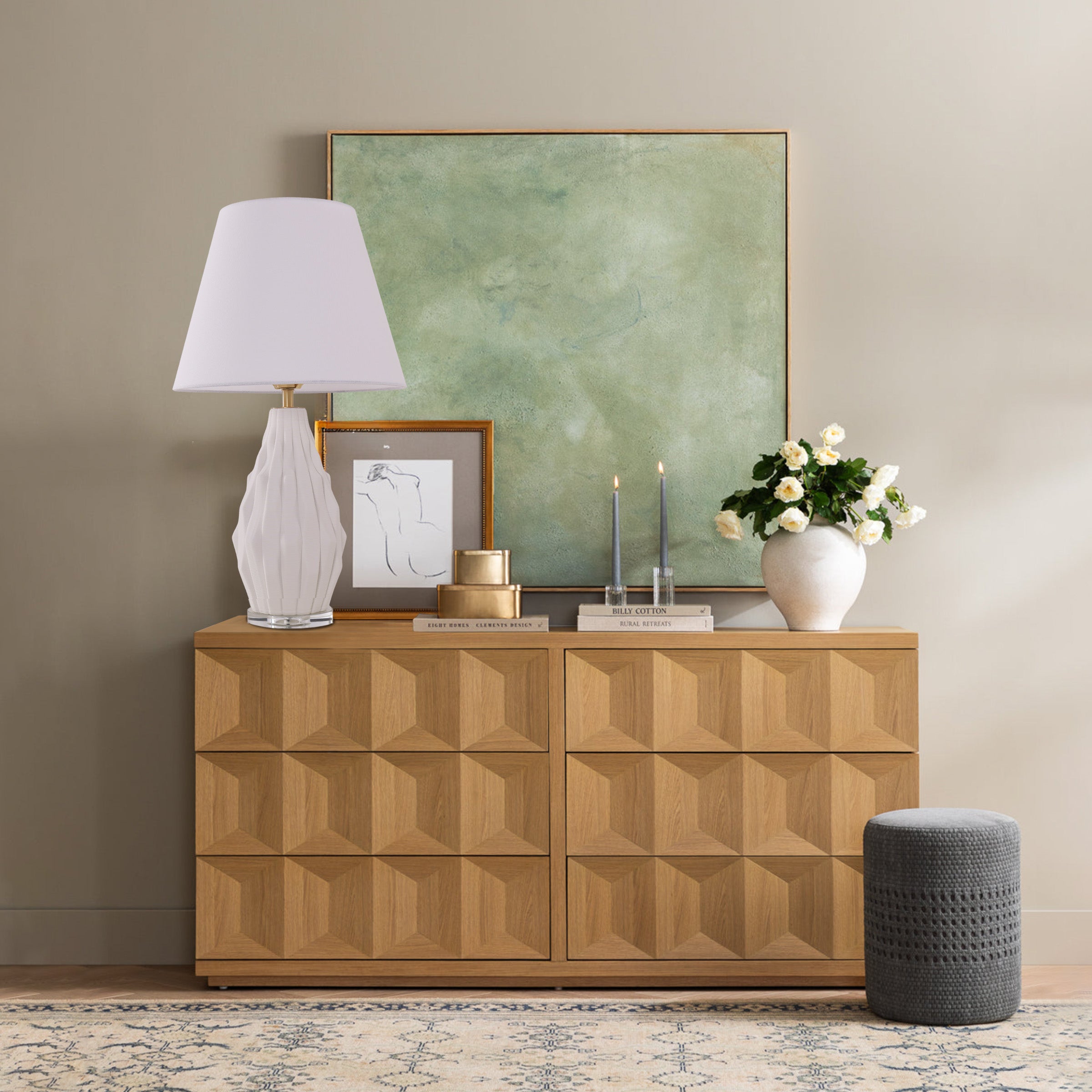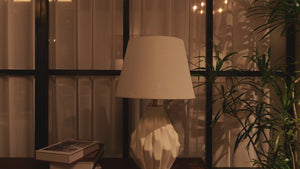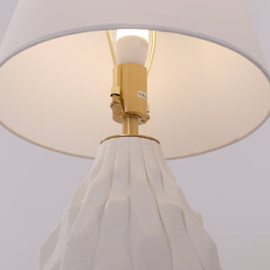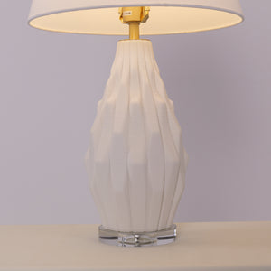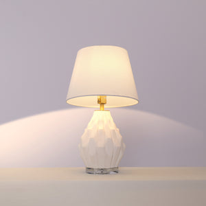 3D Pure White Polygonal Textured Ceramic Table Lamp with Fabric Shade