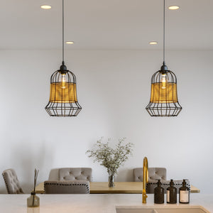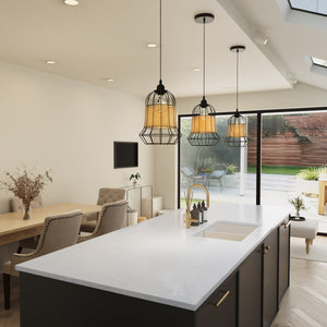 Glyph-Glyph - Rattan & Iron Bar Pendant Light | Basket-Weave Kitchen Island Lighting
