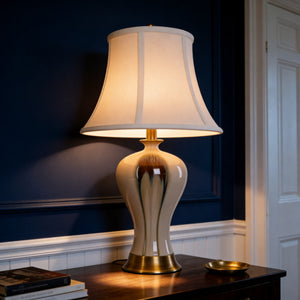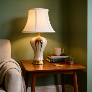 The lustrous, hand-finished ceramic base meets a weighted brushed brass pedestal, exuding an air of "Quiet Luxury." We’ve paired it with a premium linen shade to diffuse light into a warm, sophisticated ambient glow. More than just lighting, it is a statement piece designed to elevate your interior style instantly.