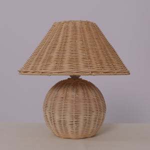 This handcrafted rattan table lamp combines natural craftsmanship with a minimalist design. Featuring a round rattan base and a complementary rattan shade, it provides soft, ambient lighting perfect for creating a cozy atmosphere in any room. Its organic aesthetic makes it ideal for bohemian, modern, or coastal-inspired interiors, adding both elegance and functionality to your décor.