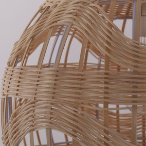 Elevate your interiors with this handwoven rattan pendant ceiling light, a stunning blend of eco-friendly rattan and sturdy iron. The graceful wave-pattern design highlights artisanal craftsmanship, making each piece unique. Emitting a warm 2700K glow, this wicker ceiling light creates a cozy, inviting ambiance perfect for dining rooms, living rooms, bedrooms, restaurants, and cafés.
