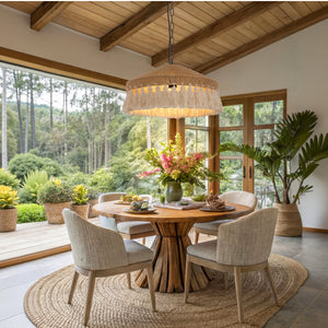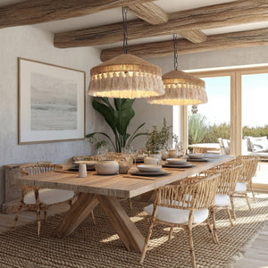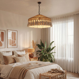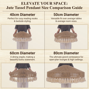 Bring warmth and texture into your home with this handcrafted boho woven pendant light, finished with soft tassel detailing for a relaxed natural look. Made from hemp rope and cotton yarn, it creates a cosy glow that works beautifully in bedrooms, dining rooms and living spaces. Its statement silhouette adds effortless character to bohemian, rustic, coastal and modern organic interiors. Available in multiple sizes(Dia 40/50/60/80cm), it is ideal for everything from smaller corners to larger feature spaces. If you are looking for a pendant light that feels both decorative and inviting, this piece is designed to make the room feel instantly more styled.