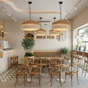 Eschewing mass-produced sterility, each lamp features hand-twisted hemp rope and cotton tassels individually tied by our craftsmen to ensure a texture that machines simply cannot replicate. The matte black industrial chain provides a grounded, sturdy "skeleton" to the soft yarn, creating a deliberate "Eclectic" aesthetic that suits everything from rustic farmhouses to contemporary city lofts.