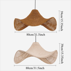 Brown & White Hat-Shaped Handwoven Rattan Pendant Light