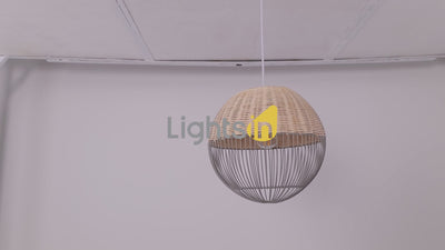 This pendant light combines handwoven rattan and a sleek metal frame, creating a harmonious balance of natural warmth and contemporary style. Its round shape adds an organic touch to any room, making it a perfect centerpiece.