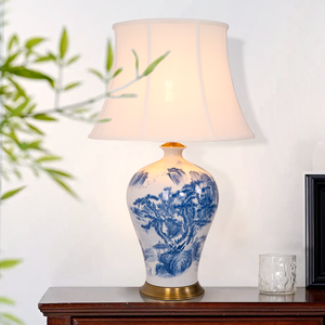 This desk lamp blends classic blue and white ceramic design with a soft fabric shade, exuding timeless elegance. The copper accents add a touch of luxury, making it the perfect statement piece for any living room or bedroom bedside table lamps. Whether creating a cozy ambiance or serving as a decorative focal point, this vintage desk lamp harmonizes tradition with modern sophistication.