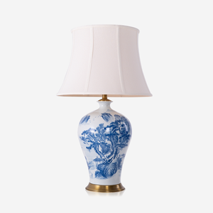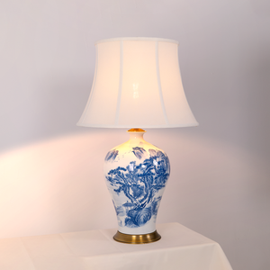 Classic Blue and White Ceramic Table Lamp with Fabric Shade