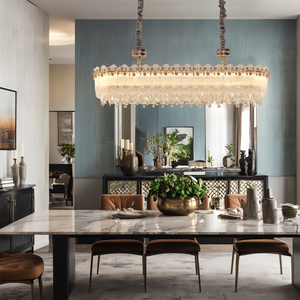 Whether gracing a cozy dining nook or a grand hall, these crystal chandeliers add a refined charm and timeless beauty. Their striking design and brilliant clarity make them perfect as over dining table lighting or multiple pendant lights in an open-plan setting. With their captivating allure, these chandeliers provide not just illumination but a bold lighting house centerpiece that enhances your home or business.