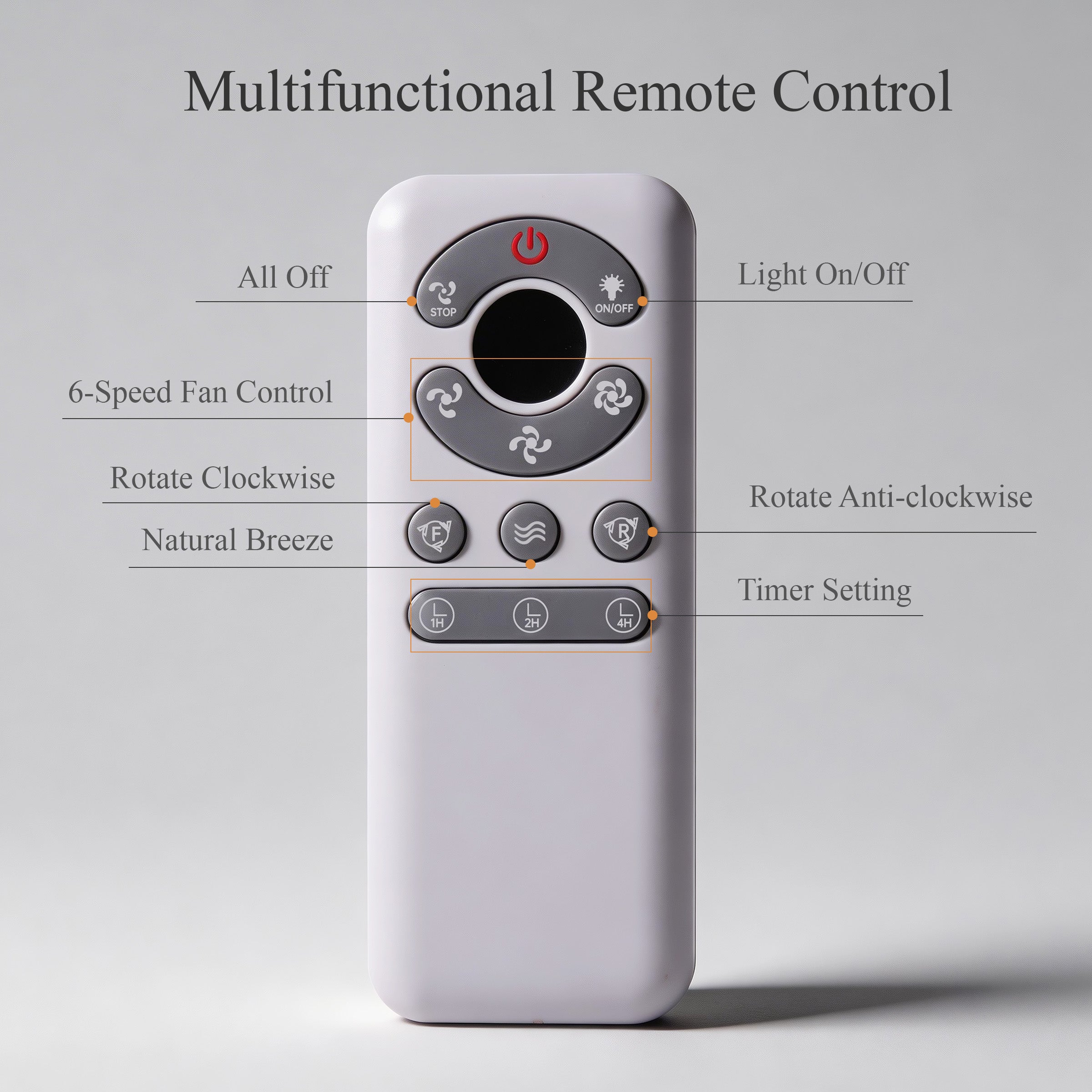 Remote Control & Timer: Easily adjust the fan speed, light color, and set a timer with the included remote for convenience.