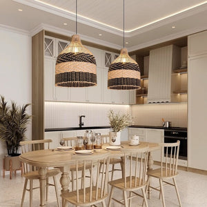 This pendant light mixes modern and traditional styles with a unique woven pattern, adding a natural, stylish touch to any room. It's practical and beautiful, ideal for living rooms, dining rooms, or bedrooms.