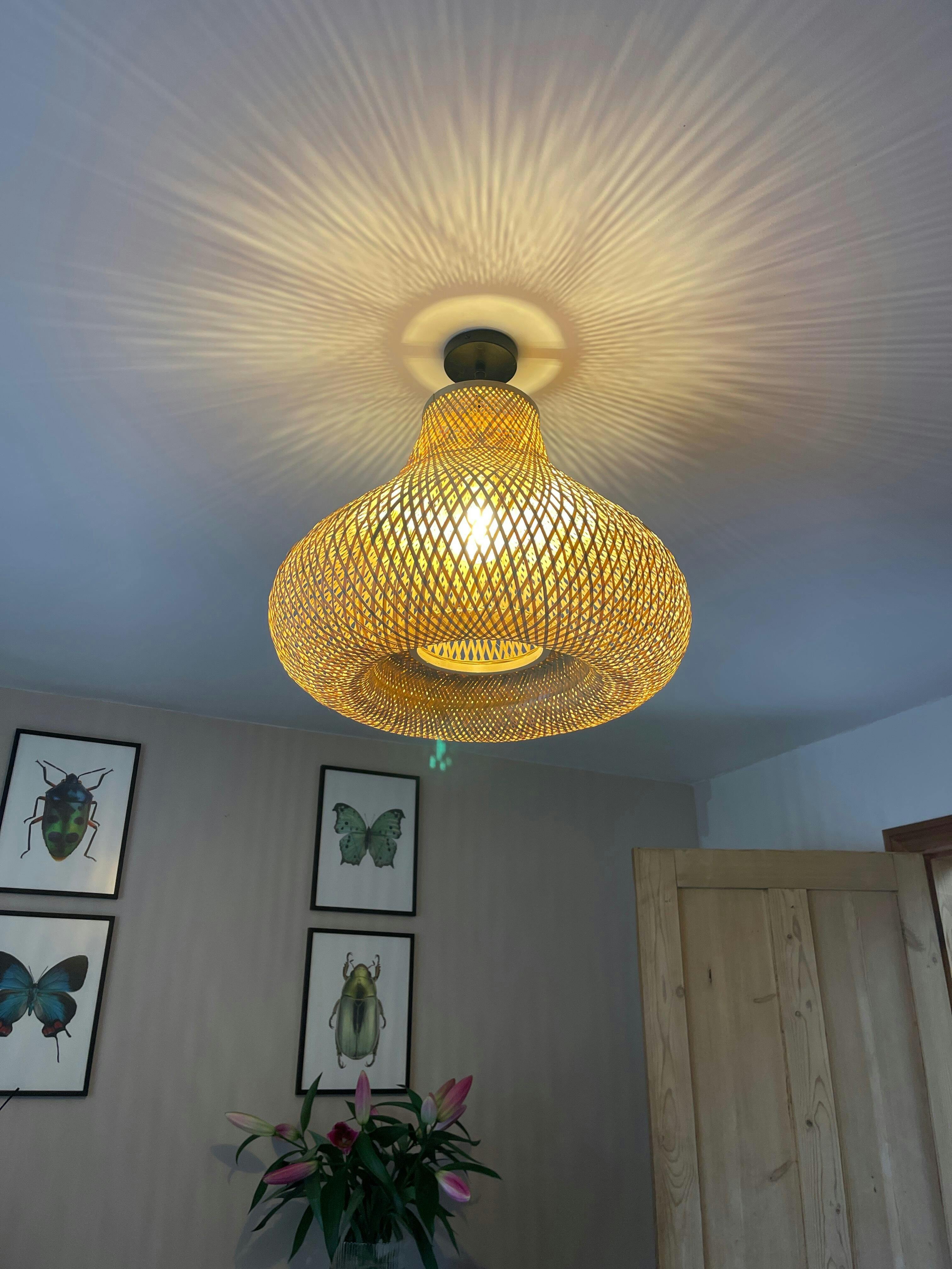 It is a masterpiece that perfectly combines nature and design. Handwoven from natural bamboo, the light filters through its intricate textures, creating a warm and relaxing atmosphere. Choose this pendant light to illuminate not only your home but also your pursuit of refined living!