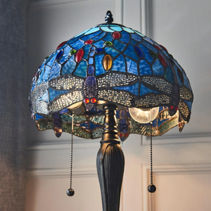 Drawing inspiration from the timeless artistry of classic Tiffany lighting, our Dragonfly Tiffany Table Lamp showcases exquisite hand-cut stained glass arranged in a captivating dragonfly motif. Each glass piece is meticulously wrapped in copper foil and soldered by skilled artisans, creating a stunning interplay of light and color when illuminated. As the centerpiece of our Tiffany collection, this lamp harmonizes perfectly with matching ceiling lights and wall sconces, allowing you to create a cohesive aesthetic throughout your living space.