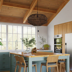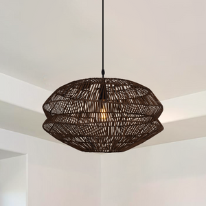 Blending classic craftsmanship with sleek, contemporary design, this handwoven pendant light adds rustic charm and sophistication to any space, making it a perfect fit for both modern and traditional interiors.