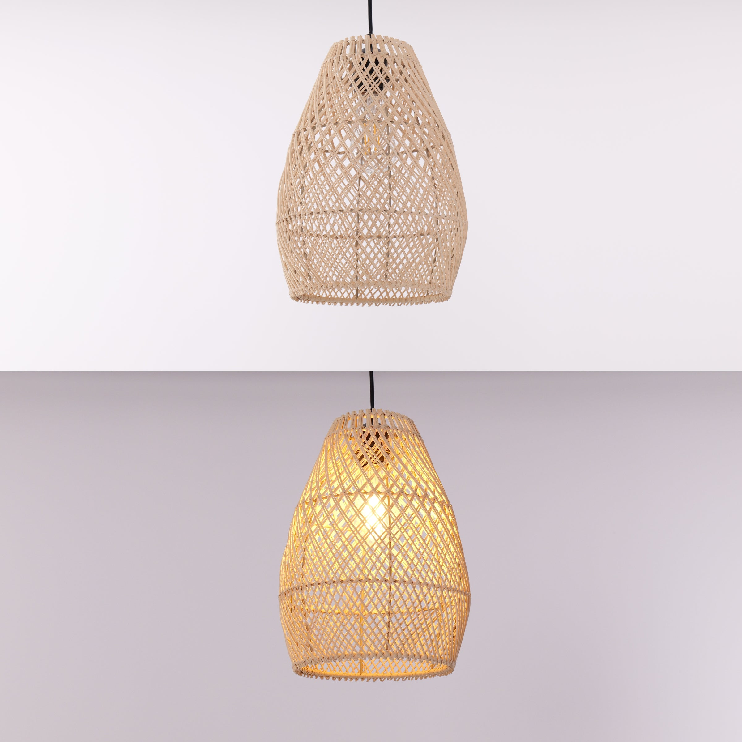 Elevate your space with this handwoven rattan pendant light, designed to bring natural elegance and warm ambiance to your kitchen island, dining room, living room, or bedroom. More than just a fixture, this boho-inspired pendant light makes a statement of sophisticated style, blending organic charm with modern home décor.