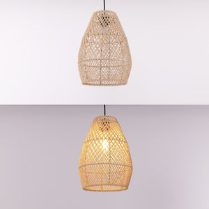 - Warm Ambient Lighting: The light filters through the rattan shade to emit a soft, warm glow.
