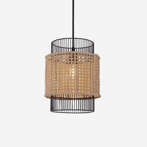 Glyph-Elegant Black Frame with Handwoven Rattan Pendant Light