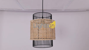 Elegant Black Frame with Handwoven Rattan Pendant Light