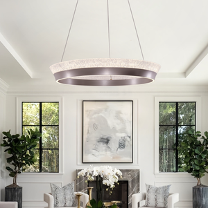 The LED dimmable pendant light features a modern ring design, perfect for creating a stylish and functional lighting solution for your home. Choose between our sophisticated single ring chandelier or the triple ring chandelier, each crafted from durable aluminum for long-lasting strength and a radiant finish. Equipped with a remote control, this adjustable pendant light allows you to easily customize the brightness to suit any mood or occasion.