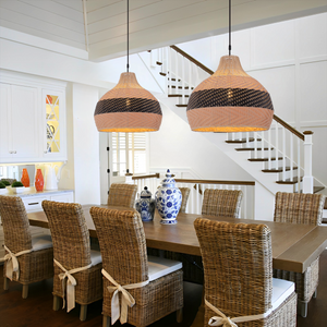 Dewlight-Handwoven Rattan Black Pendant Lamp | Natural Kitchen Island Pendant Lighting