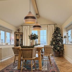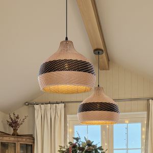 Elevate your home with our Handwoven Rattan Black Pendant Lighting, a stunning black pendant light that brings rustic charm and natural texture to your interior. This versatile pendant lighting features traditional weaving craftsmanship that creates soft, dappled light patterns while emitting a warm 2700K glow. Ideal as farmhouse kitchen lighting or country dining room pendant, the lightweight rattan construction allows for easy installation with its adjustable cord. Perfect for complementing rustic, farmhouse, and minimalist interiors, this natural ceiling lamp adds organic warmth to living spaces, bedrooms, and hallways.