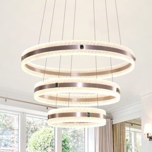 This pendant light weaves elegance into your space with its interlocking gold rings, creating a captivating visual centerpiece. Crafted from premium aluminum and acrylic, it offers a perfect blend of modern sophistication and durable design. Ideal for living rooms or dining areas, it transforms any setting into a luminous art piece.
