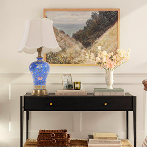 The beautiful floral detailing on the blue ceramic base adds a touch of sophistication and classic charm to your home. The soft, neutral shade complements the vibrant base, creating a balanced and elegant design that suits various interior styles, including traditional, modern, and eclectic spaces.