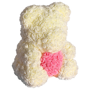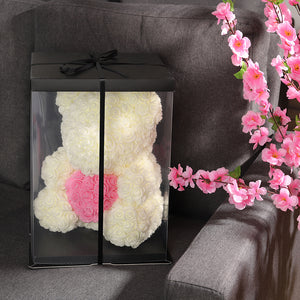 Eternal Rose Teddy Bear Heart Gift Set - Milk White with Pink Heart