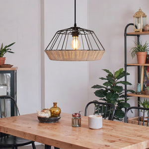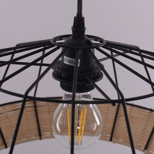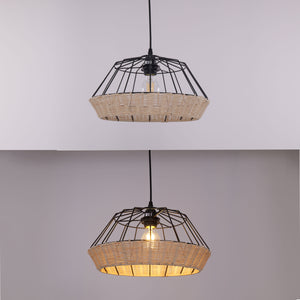 This stylish rattan pendant lamp combines durable iron and natural rattan, offering a blend of industrial and organic design. The geometric structure, with its open wire frame and rattan-like texture, creates a striking visual effect in any space. Ideal for modern ceiling lights for living room or rustic interiors, this rattan ceiling lamp provides both aesthetic appeal and functionality. The adjustable hanging length allows customization for bathroom ceiling lights, kitchens, or even hallway ceiling lights, making it a versatile addition to diverse spaces.