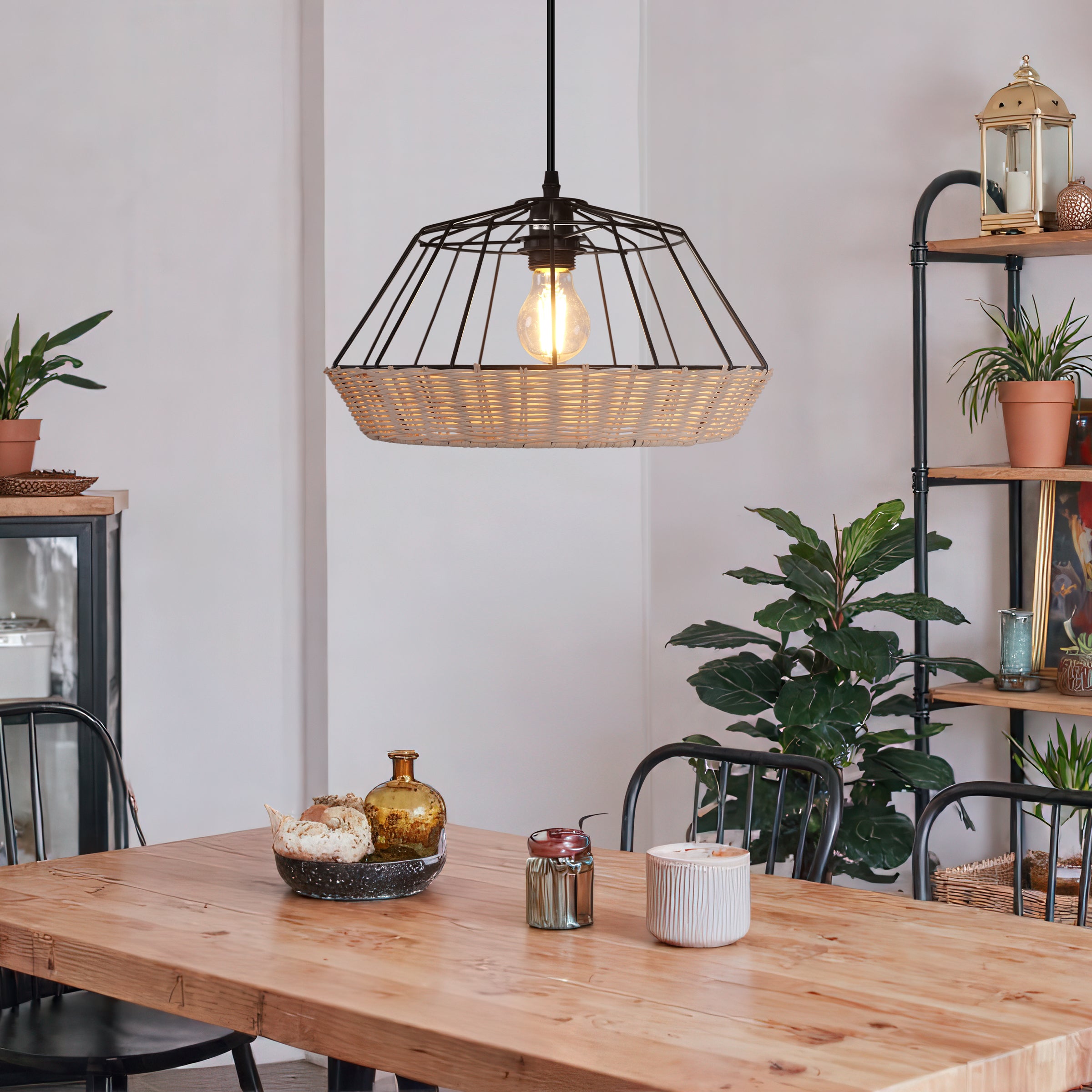 - Soft, Diffused Lighting: The open wire frame and rattan lamp shade gently diffuse light, creating a cozy glow perfect for led ceiling lights or contemporary ceiling lights.