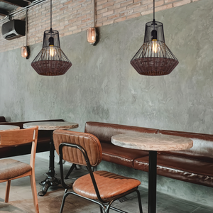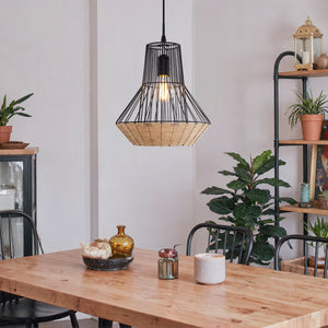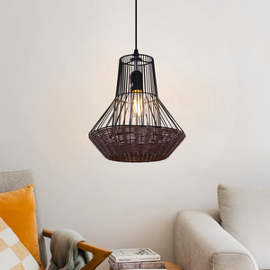 This geometric pendant light combines the natural elegance of rattan with the durability of iron, creating a stunning fixture that complements both rustic and industrial interiors. With its adjustable hanging length and two beautiful finishes—natural and brown—this pendant light adds warmth and sophistication to any space. Whether illuminating your dining room, kitchen island, or living room, it provides a soft, diffused glow, perfect for creating a welcoming ambiance. Its versatile design suits modern, minimalist, and country-style settings.