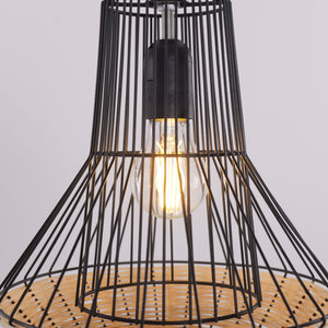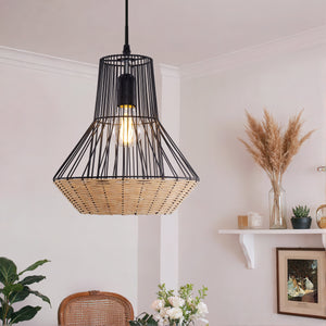 Glyph-Geometric Rattan and Iron Pendant Light for Dining, Kitchen, and Living Rooms