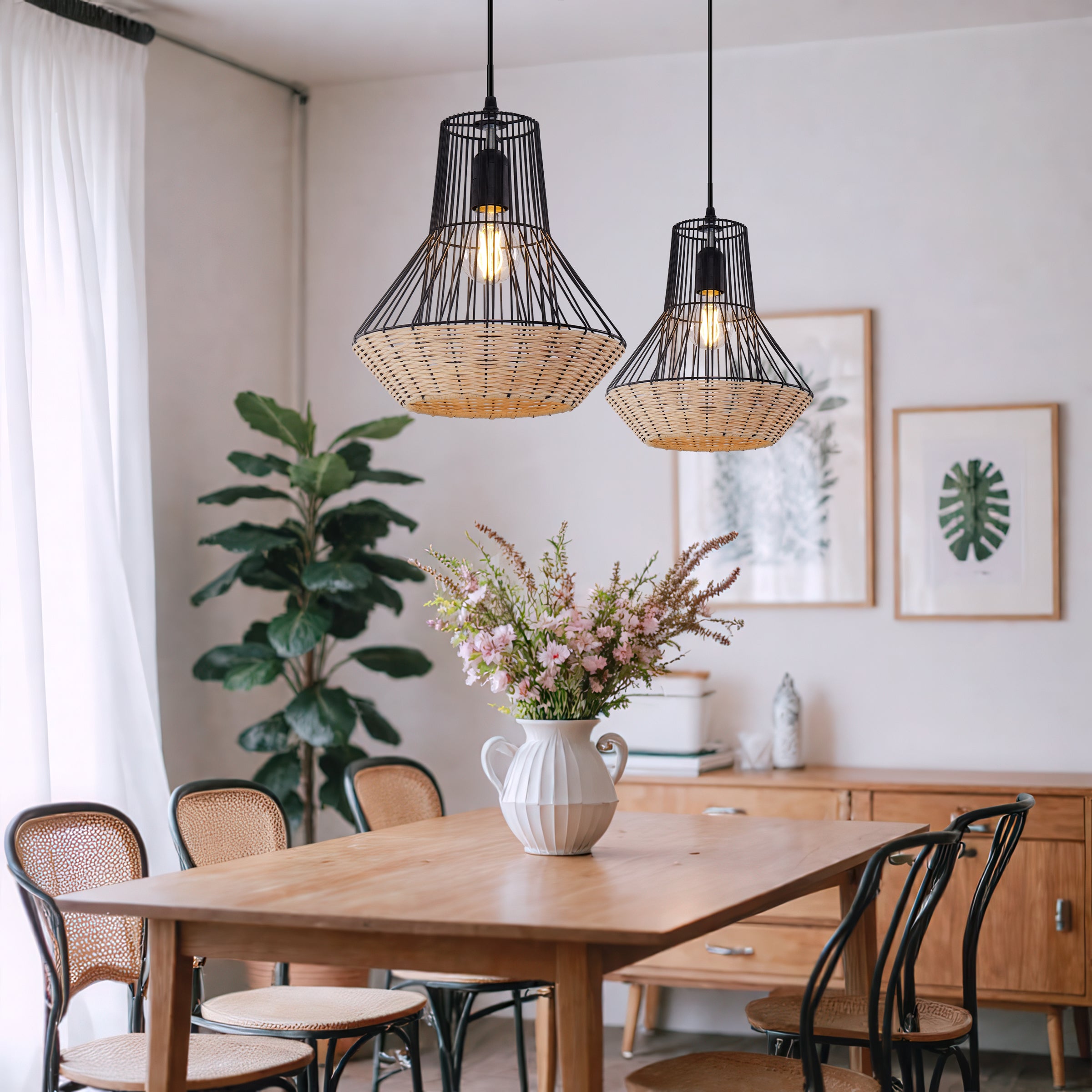 High-Quality Materials: Crafted from sturdy iron and natural rattan, this pendant light blends durability with organic elegance, ensuring long-lasting appeal.