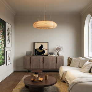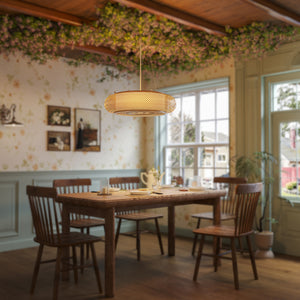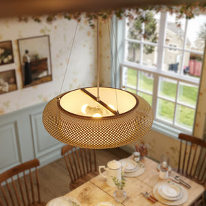 Discover the Lutta Japanese-Style Bamboo Light, a versatile LED ceiling light and pendant light fitting that brings authentic bamboo house aesthetics to UK homes. This handwoven bamboo fixture features a unique flat pancake design with natural bamboo finish, offering both flush mount and pendant options for flexible installation. Emitting a soft warm glow, it creates calming ambiance in living rooms, bedrooms, and kitchens while complementing Japandi, boho, and modern interiors. With artisan craftsmanship and energy-efficient LED compatibility, this bamboo ceiling light delivers both natural texture and functional illumination for contemporary British living.