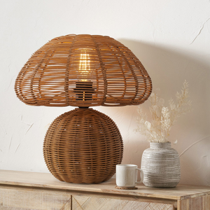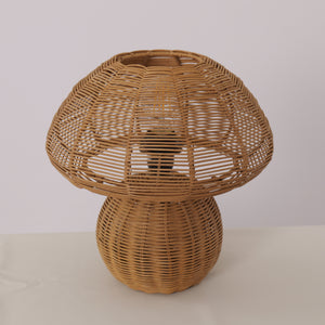 Add a touch of organic charm to your home with this mushroom-shaped rattan table lamp. Meticulously handcrafted from sustainable natural materials, this eco-friendly lamp combines a minimalist silhouette with soft light diffusion, creating a warm and calming glow perfect for bedrooms, living rooms, or desks. The unique woven texture allows light to filter gently through, offering just the right amount of illumination for reading, relaxing, or enhancing your décor.