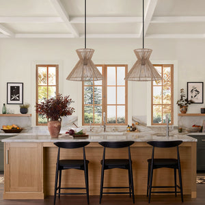 With a 2700K color temperature, this pendant light provides soft, warm light, perfect for creating a relaxed and inviting environment. The warm light complements the natural materials, enhancing the cozy feel of any room. This lighting suits spaces dedicated to socializing or unwinding, such as dining areas or living room ceiling lights. It pairs beautifully with kitchen pendant lighting or ceiling light fittings in any modern or rustic home.