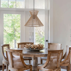 This handwoven rattan pendant light effortlessly blends natural charm with contemporary style. Its earthy tones and organic design create a warm, inviting glow, perfect for adding a cozy ambiance to your living room ceiling lights or dining room. Crafted with precision from paper rope and iron, this eco-friendly piece brings a touch of nature to your home while offering durability and aesthetic appeal. Ideal as kitchen pendant lighting or as a bathroom pendant light, it suits various spaces, enhancing the atmosphere with a soft, glowing light.