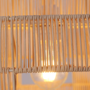 Illuminate your space with this modern ceiling light, a handwoven rattan pendant lamp that blends natural artistry with contemporary design. Its layered geometric structure creates a dynamic lighting effect, filtering warm 2700K LED light through its intricately woven panels. This ceiling light for living rooms, dining rooms, and bedrooms seamlessly fits into Scandinavian, bohemian, and coastal-inspired interiors, making it an elegant yet functional lighting choice. The adjustable hanging cord allows easy customization, making it suitable for both low and high ceilings in residential and commercial spaces.
