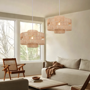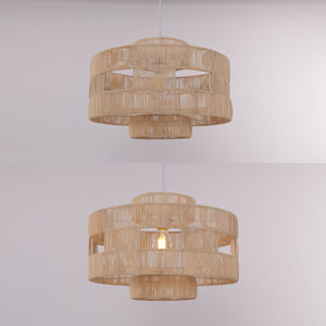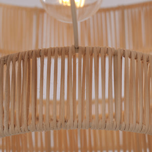 Designed for an E27 bulb, this pendant light emits a 2700K warm glow, perfect for creating an inviting and relaxed atmosphere. The layered rattan structure diffuses light beautifully, casting soft, decorative shadows while providing sufficient illumination. Ideal for intimate gatherings, peaceful reading nooks, or stylish hospitality settings, this lamp offers a perfect balance between ambiance and functionality, ensuring a welcoming glow in any environment.