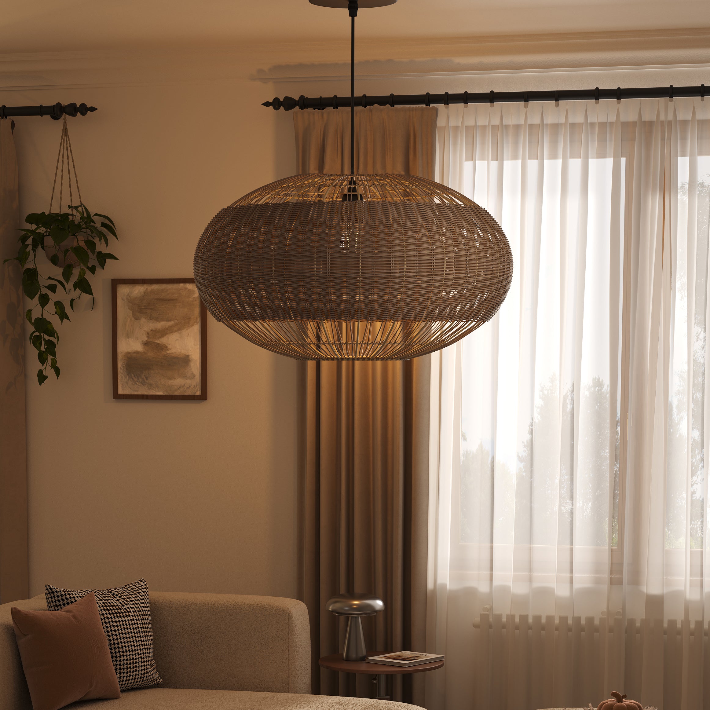 - Durable and Lightweight: Despite its intricate design, the rattan structure is sturdy yet lightweight, making installation simple and secure.