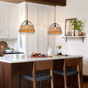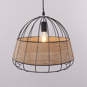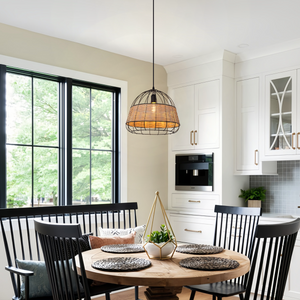 Brighten your home with the timeless appeal of this rattan and iron pendant light. Its clean lines and subtle textures offer a blend of rustic warmth and sleek modernity, making it a perfect addition to your dining room or kitchen for a cozy, stylish atmosphere.