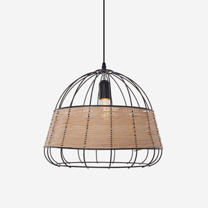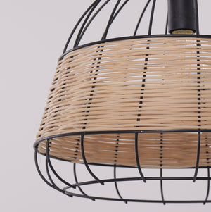 Discover the perfect blend of industrial and organic design. The geometric black iron frame combined with the natural texture of the rattan shade creates a minimalist yet bold statement piece.